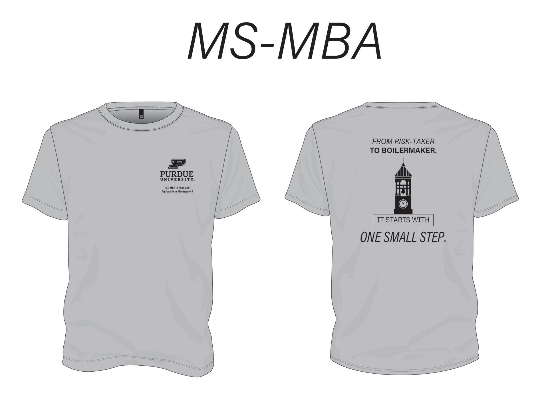 Various shirt designs for the Center for Food and Agricultural Business, along with the MS-MBA degree program