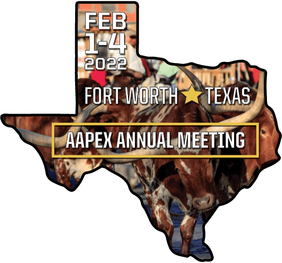 A magnet in the shape of the state of Texas, promoting the 2022 AAPEX Conference
