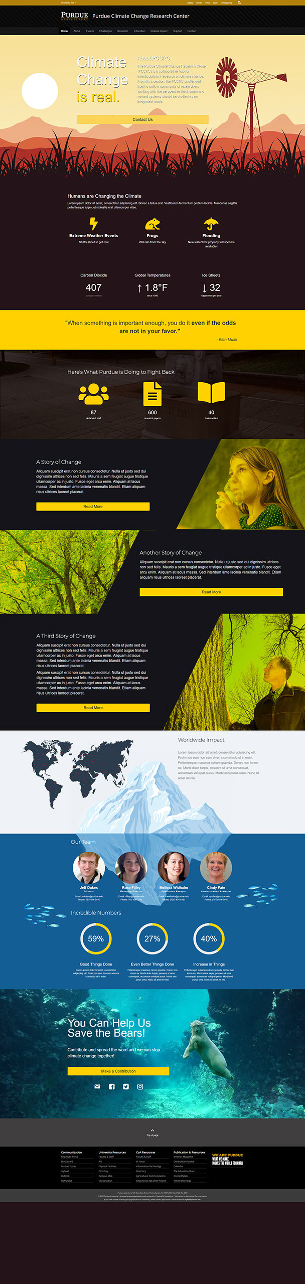 A website homepage mockup I created using Photoshop for the Purdue Climate Change Research Center's new website.
